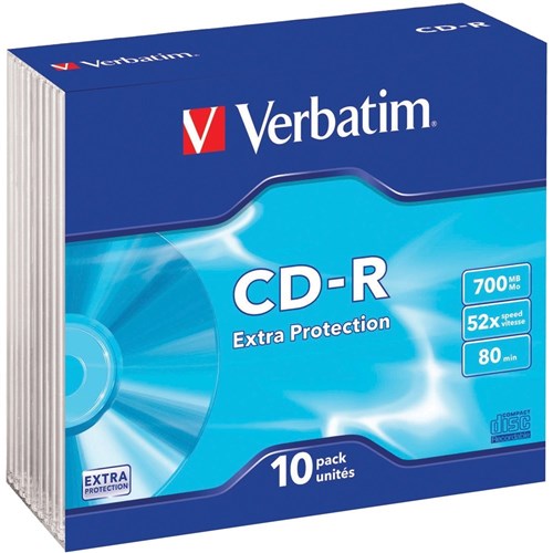 Verbatim Recordable CD-R 80Min 700MB 52X Slim Case Pack Of 10