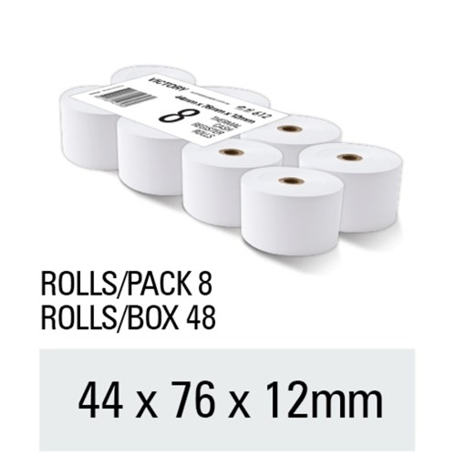 Victory Calc/Register Rolls 44x76x11.5mm Thermal CCR612 Pack of 8