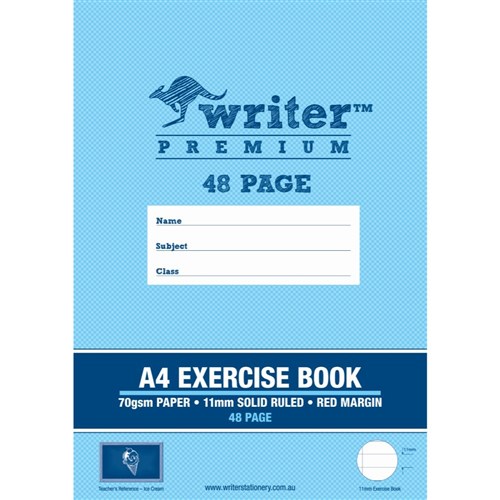 • Writer Premium Exercise Books feature heavy duty covers, high quality white 70gsm paper.