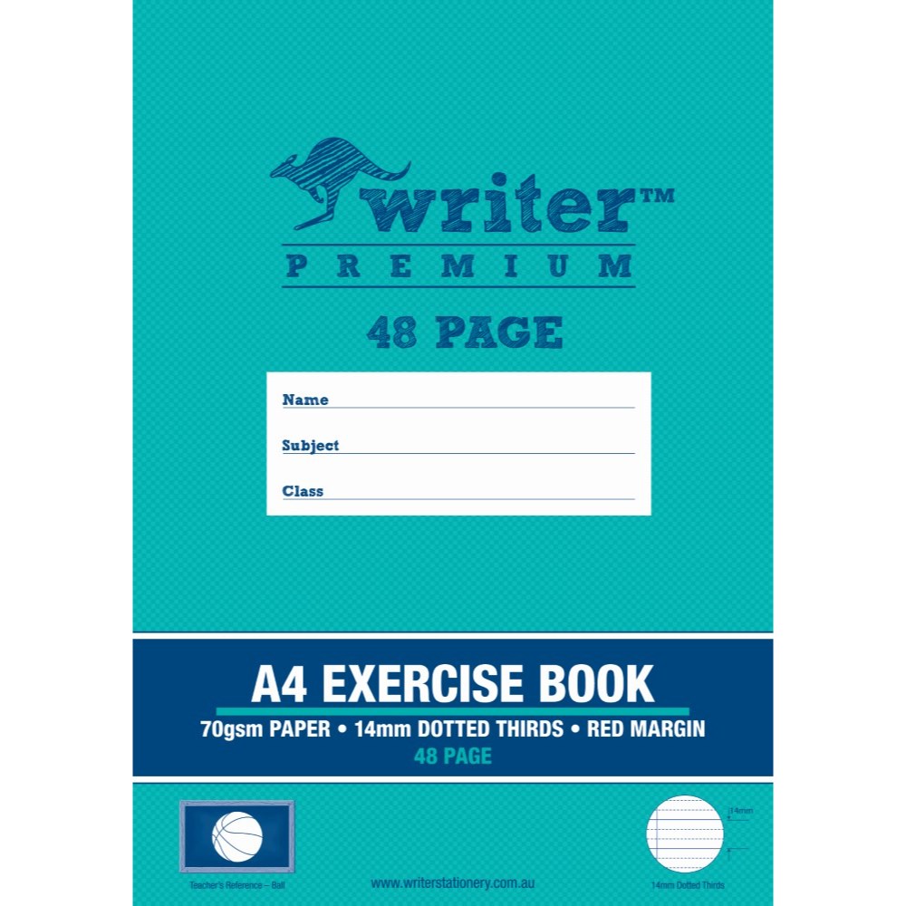 Writer Premium Exercise Book A4 48 Page 14mm Dotted Thirds Red Margin Ball